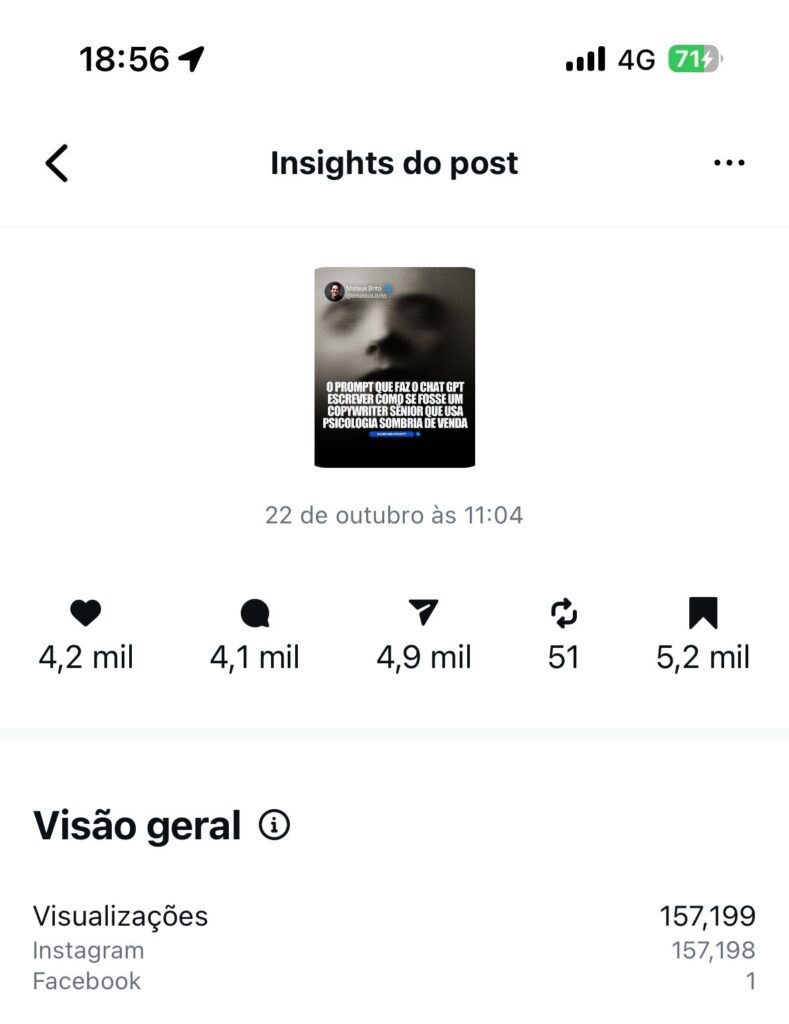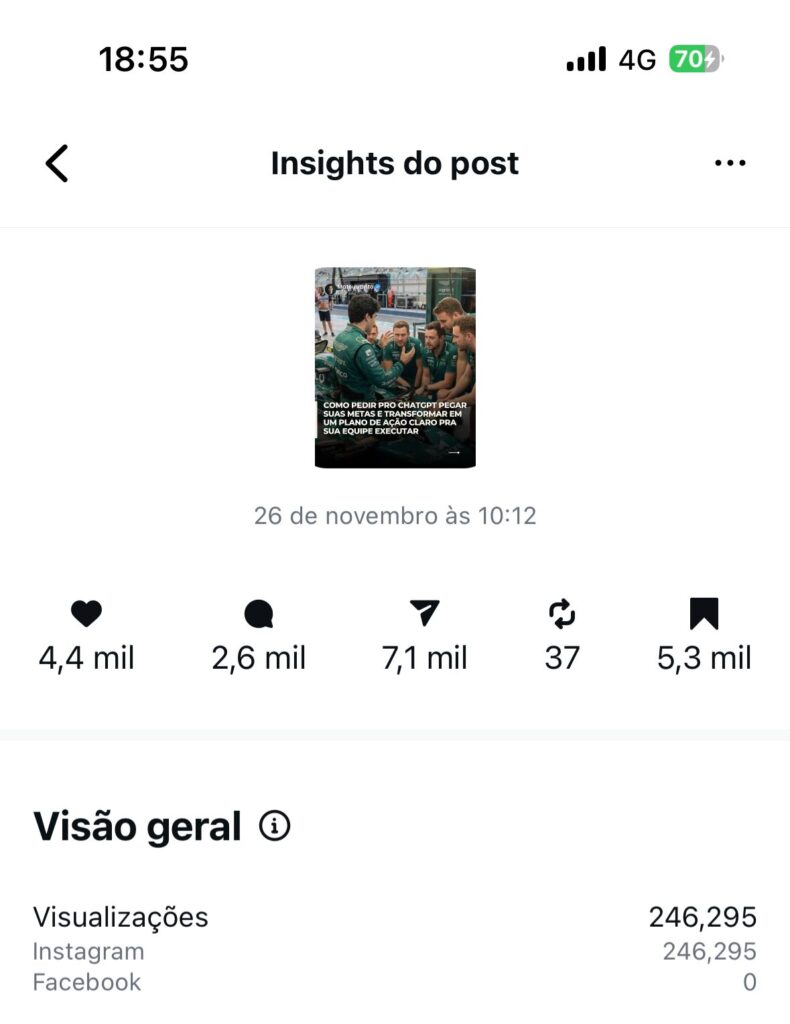 🟢 Capa no padrão = 87% de taxa de atenção | +100.000 pessoas alcançadas.