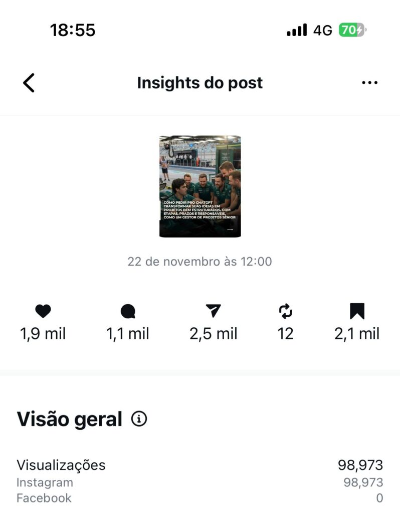 Depois disso, geramos 2M de views, 8231 seguidores e 135 leads qualificados em poucos dias e sem INVESTIR.