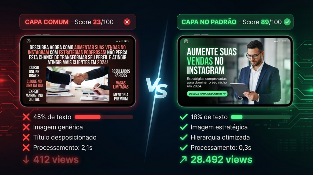🔴 Capa comum = 12% de taxa de atenção | 300-800 pessoas alcançadas